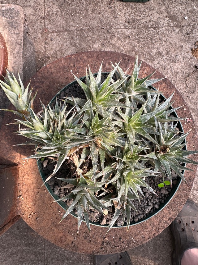 Deuterocohnia属の植物種です。 この種は、標高2500〜3000mのボリビア固有のもの。 海老茶色の花をつけます。 なかなか大株! 大きいため、直接のお渡しも可能です。 その際はお引き渡し時に送料をご返金いたします。 w50cm h15cm 鉢のまま発送になります。 【ご購入に際して】 カメラの性質上、実際の植物と色合いが多少異なることがあります。 ライトを当て撮影している場合は、色合いが強調されることもあります。 配送にはリサイクル資材を使用いたします。 万全の梱包をいたしますが、枝や花の折れ枯れ等、生き物ですのでお届けまでに変化があることもございます。ご了承ください。 重大な過失や破損が見受けられた場合には、到着後2日以内にご連絡をお願いします。 明らかに輸送上の問題での破損が見受けられた場合は、当方では対応いたしかねます。 宅配会社さまにて保障のご相談・ご対応をお願いします。 == 雀草 SHOP == https://jansonursery.theshop.jp == 雀草 yahoo shop == https://auctions.yahoo.co.jp/seller/nagifigurie 当ナーサリーでは、 年月をかけて自家栽培した株の余剰株をはじめ、 信頼のおける海外の育成家や生産者から直接買付・輸入した植物の育成、販売をしています。 一般品種からレア品種まで 様々な品種を取り扱っております。 #雀草 #雀草ナーサリー #dyckia #canistrum #billbergia #bizarreplants #agave #hechtia #Hohenbergia #Neoregelia #アデニウム #Billbergia #aechmea #tillandsia #plantstagram #Neoregelia #ブロメリア #ホヘンベルギア #ネオレゲリア #ビカクシダ #コウモリラン #ビルベルギア #エクメア #ディッキア
