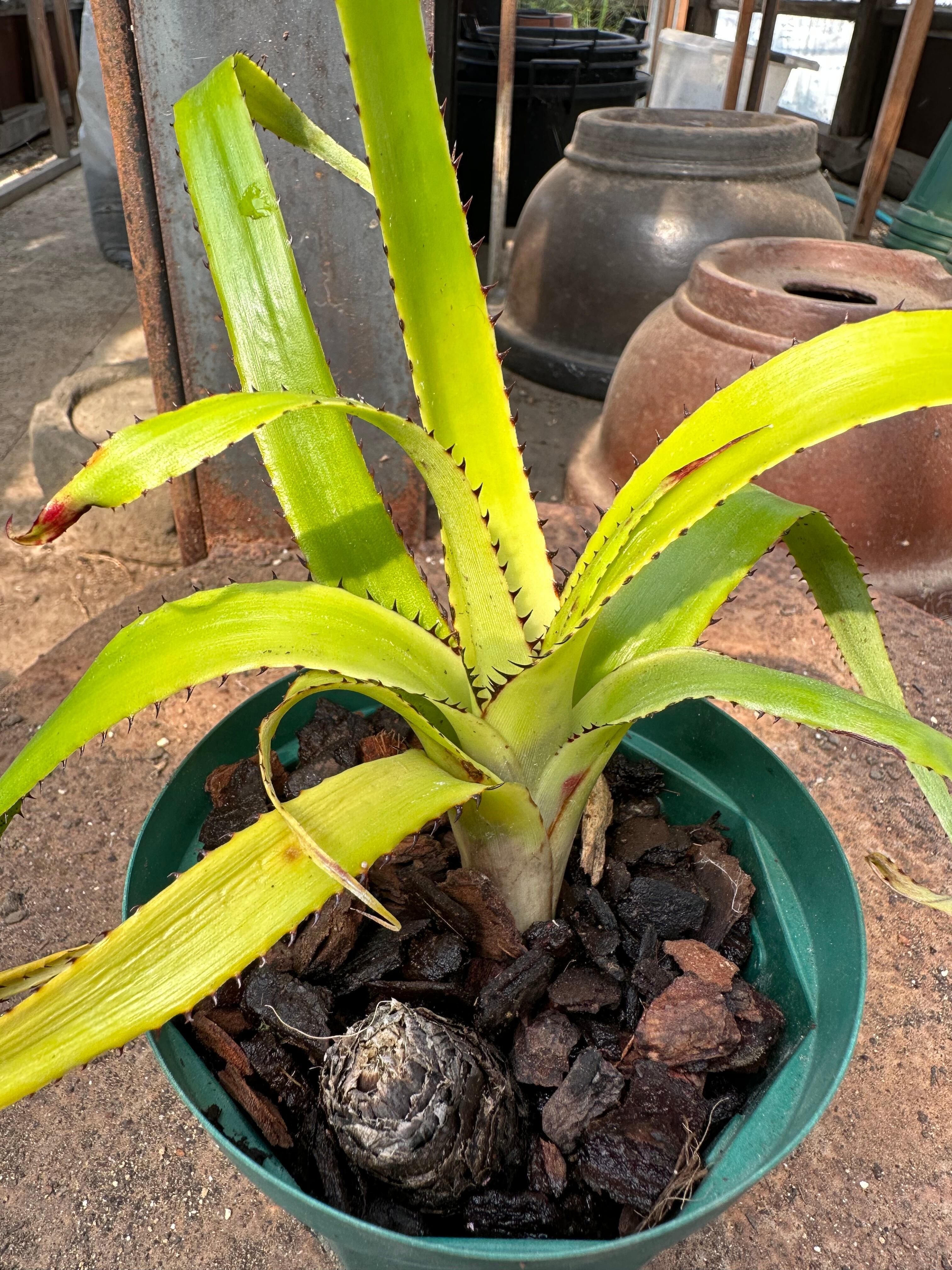 大きくなると、つぼ型を形成し緑の葉に黒いトゲが美しく映えます。